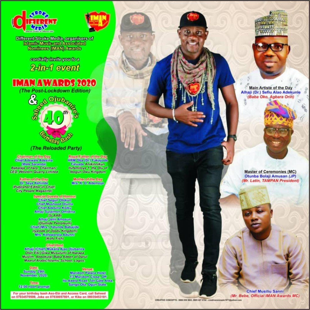 News Rain Nigeria gathered that the organizers of award event designed mainly for the Islamic industry in Nigeria, Islamic Music and Associated Nominees (IMAN) Awards, Different Stroke Media, have scheduled the 2020 edition of the awards, tagged, the Post-Lockdown Edition for Sunday, 29th November 2020.