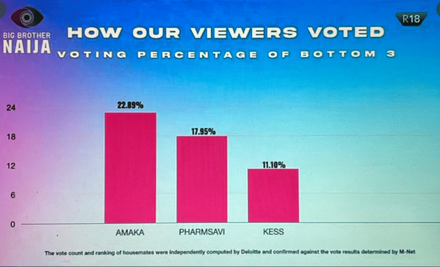 How viewers voted for Kess, Pharmsavi and Amaka has emerged.