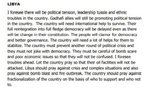 In addition to the multitude of fulfilled prophecies, the flood crisis in Pakistan, tension in Iraq, leadership tussle in Libya, and death of top NURTW official which were all in the prophecy book have given more reasons the man of God should be respected.