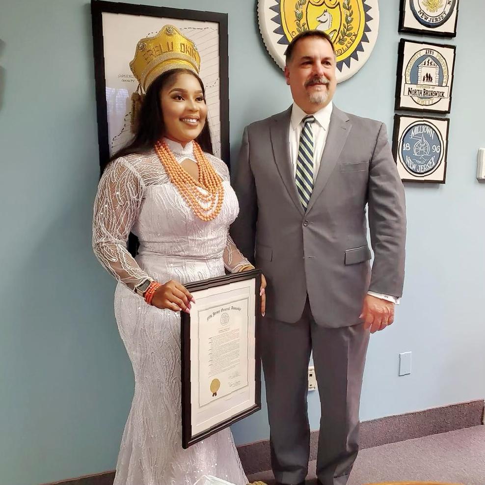 Renowned Nigerian Philanthropist, Dr. Pearl Chidinma Ogbulu, popular by her chieftaincy title, Erelu Okin, has received special acknowledgment and certificate of citizenship from the Mayor of Newark, New Jersey, for her humanitarian efforts in Nigeria, during a recent visit to the former.