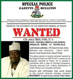 The bulletin, which has the picture and address of the lawmaker on it, was from the State Criminal Investigation Department of the Bauchi State Police Command issued by the Authority of the Inspector General of Police, Usman Baba.