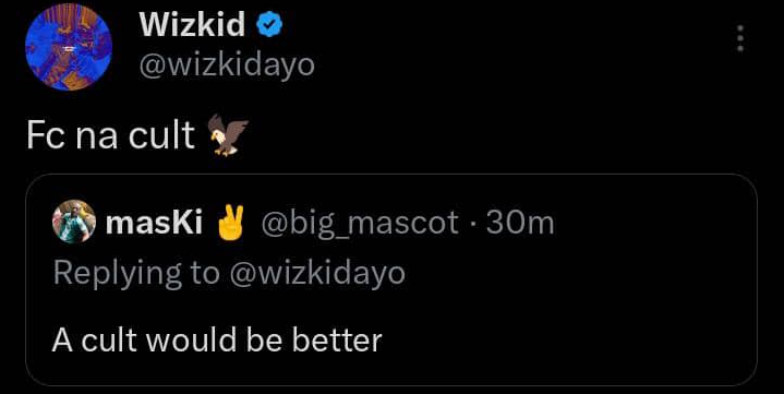 When a fan suggested he start a cult instead, Wizkid responded by saying that his fanbase, Wizkid FC is already a cult.