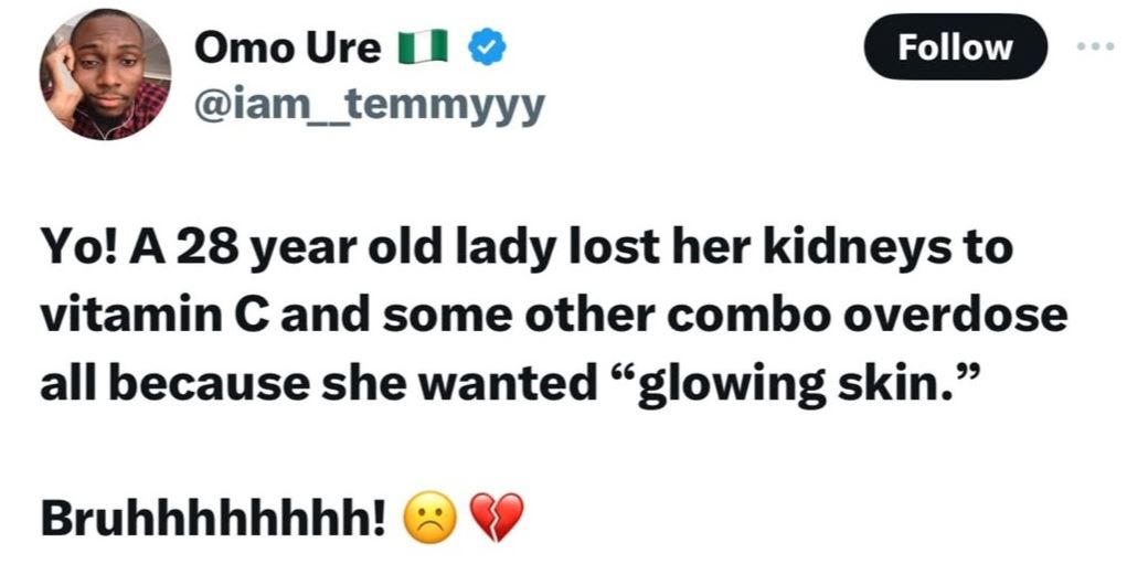 ….As Woman Seeking Glowing Skin “Loses Her Kidneys”