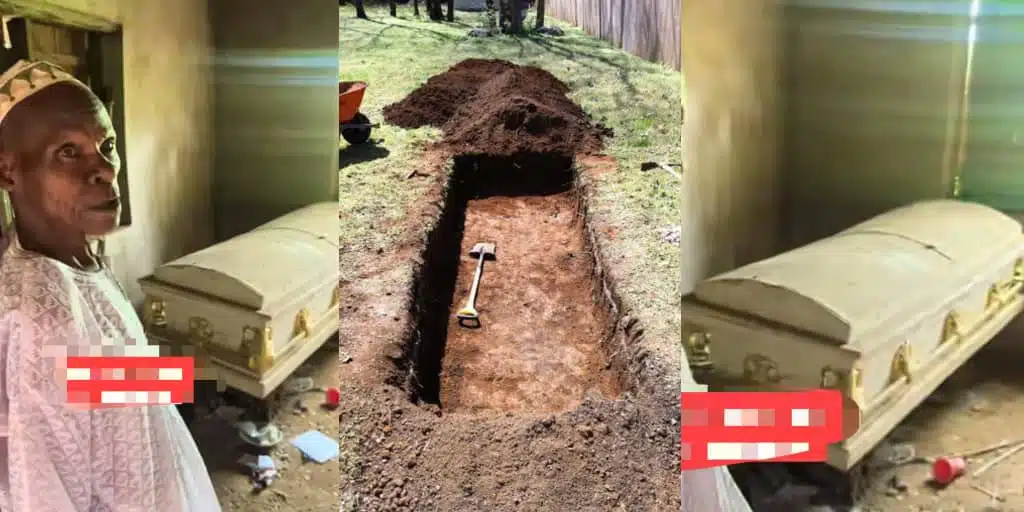 Video Of Nigerian Man Preparing For His Death, As He Buys Coffin And Digs Own Grave