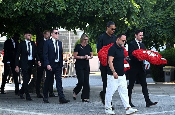 Liverpool captain Virgil van Dijk and teammate Andy Robertson were seen carrying floral tributes into the church, alongside manager Arne Slot and players including Curtis Jones, Darwin Nunez, Cody Gakpo, Joe Gomez, Ryan Gravenberch, and Conor Bradley.