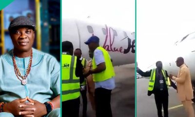 In a video published by a blog on Wednesday, the singer was seen in front of the plane while airport officials engaged him in conversation.