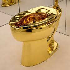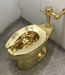 America, created by Italian conceptual artist Maurizio Cattelan, is a fully functional toilet, fashioned from more than 15st 13lb (101.2kg) of solid 18-carat gold.