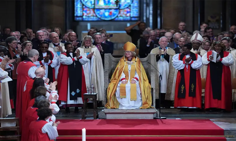 The former midwife was formally installed in the historic ceremony at Canterbury Cathedral in southeast England in front of around 2,000 people, including heir to the throne Prince William and his wife Catherine.