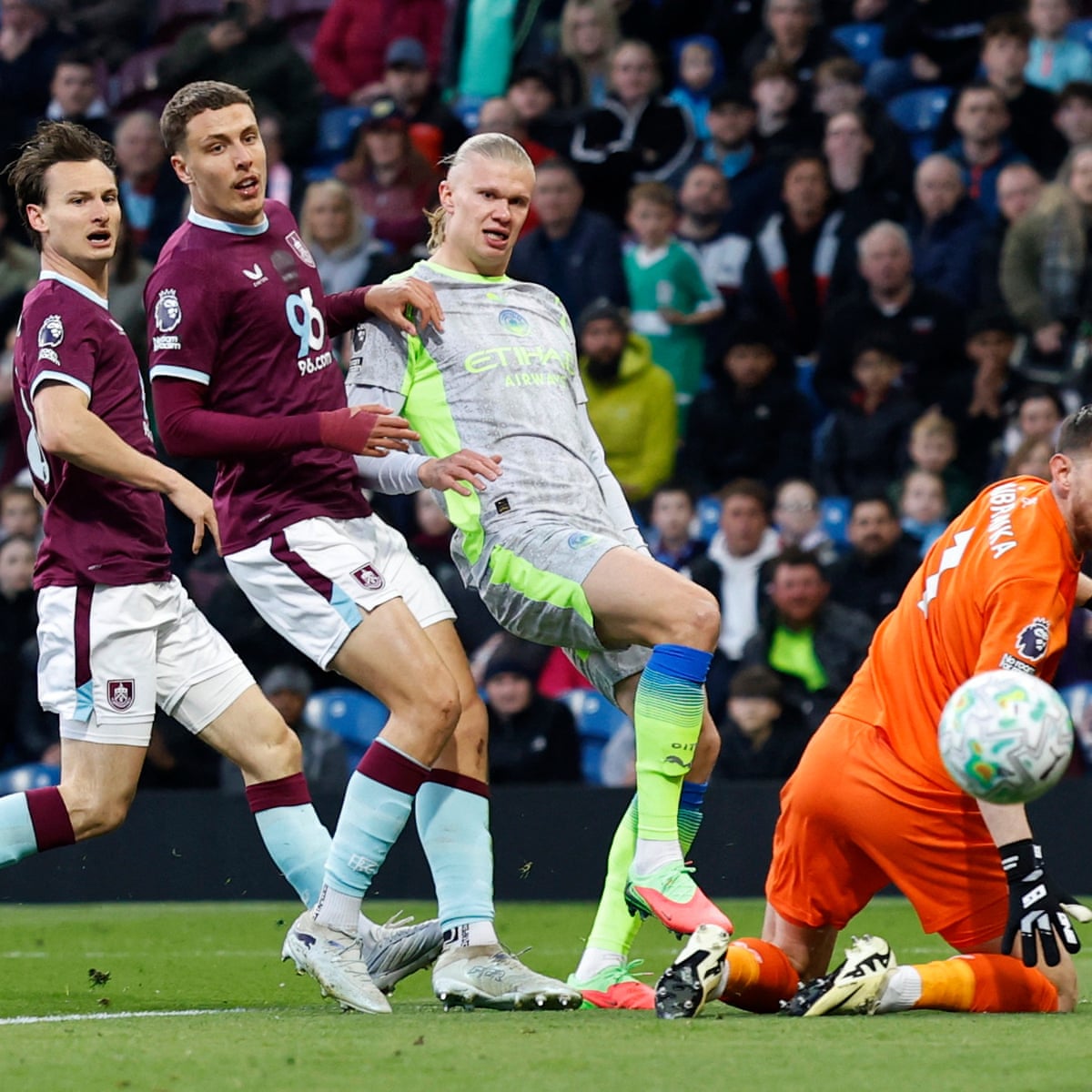 Manchester City took the lead in five minutes when Haaland darted through Burnley’s defence to meet Jeremy Doku’s through ball and expertly chipped the goalkeeper for his 24th league goal of the season.
