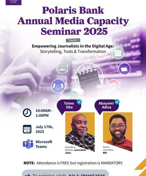 Polaris Bank is set to host the 2025 edition of its Annual Media Capacity Seminar on July 17, 2025, from 10:00 AM to 1:00 PM. This...